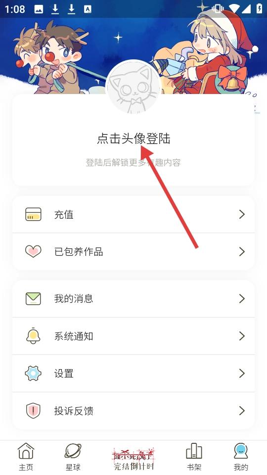 3、点击【点击头像登陆】区域,进入登录页面。