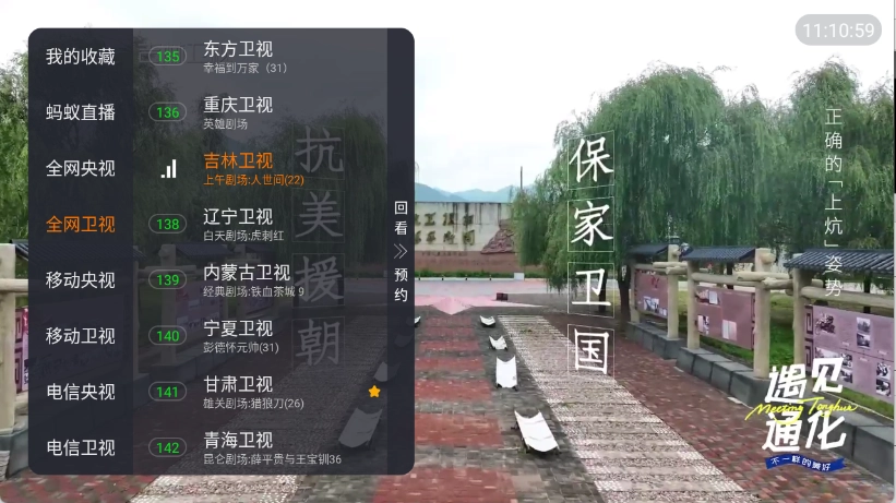 进入首页后,点击屏幕任意位置,左侧栏便会显示众多电视频道。
