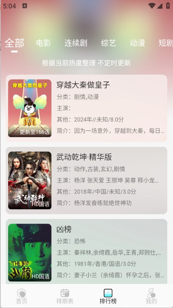 3、排期表为大家提供每天影视更新情况。