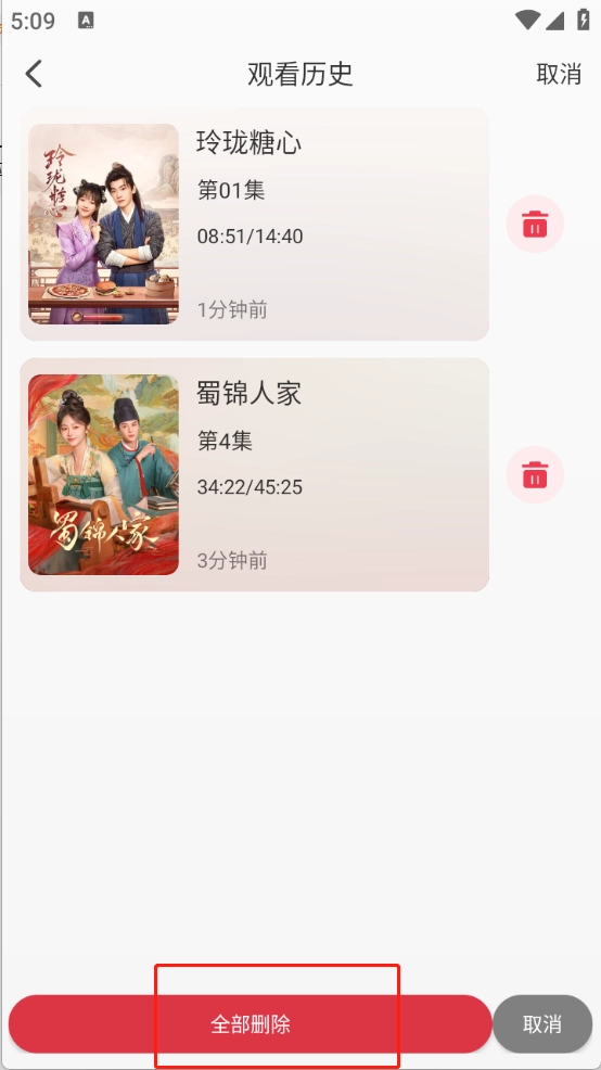清风影视如何删除观看历史