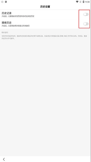3、关闭历史记录、搜索历史即可。