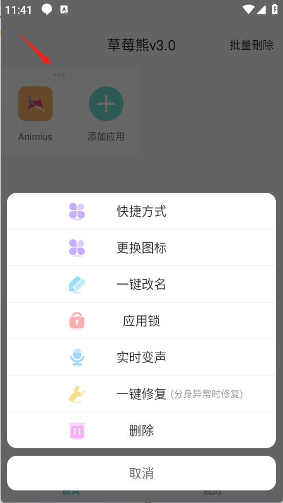 4、添加完成后,点击应用右上角的三点图标,即可对这些软件进行更换图标、一键改名、删除等操作。