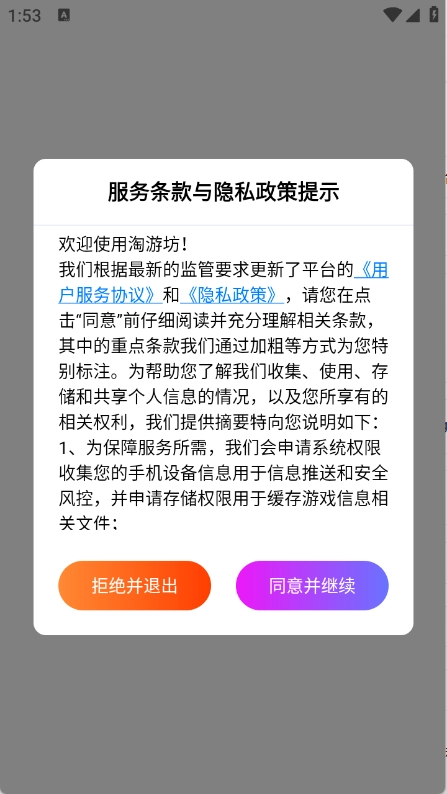 1、用户首先需在本站淘游坊,查看并同意隐私政策与用户协议。
