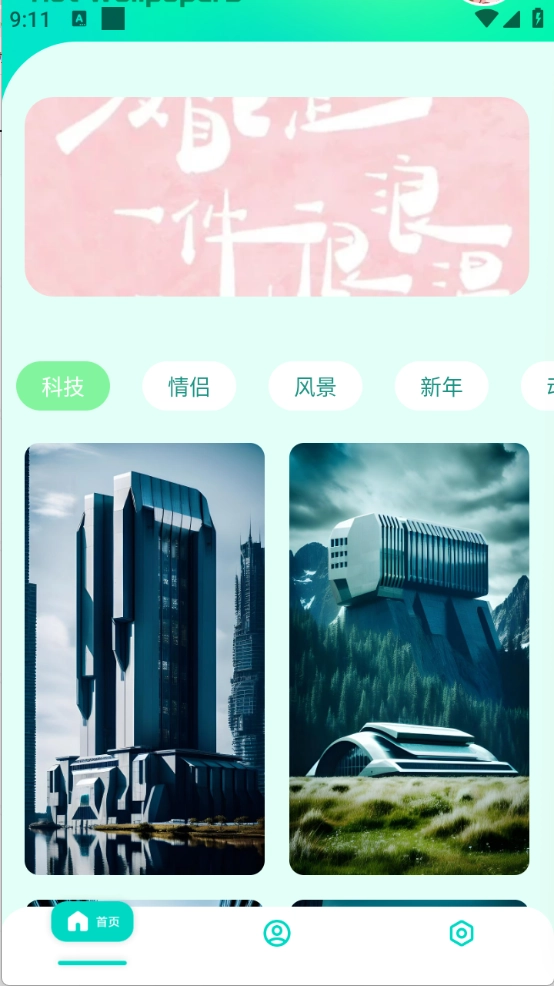 进入首页后,能看到详细的壁纸资源分类,涵盖科技、情侣、风景等多种类型。