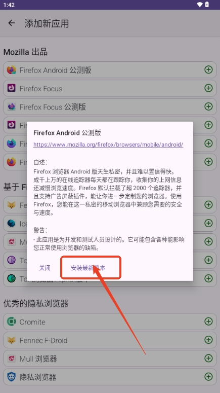 5、点击“安装最新版本”选项,即可所选的浏览器。