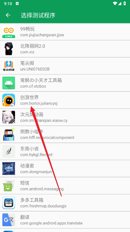 2、如图所示,选择所需测试的软件或游戏并点击。