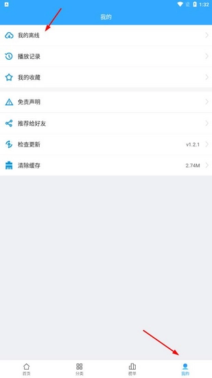 5.的视频可以在【我的】页面中【我的离线】中查看