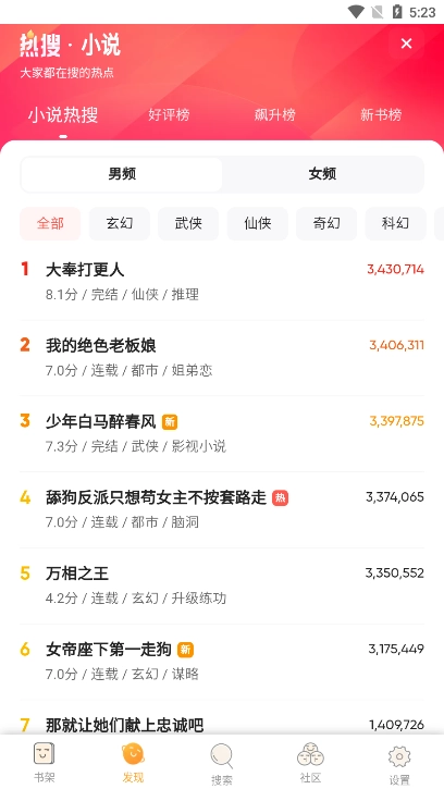 多维度分类体系,可依据题材、热度、字数等条件对作品进行筛选。
