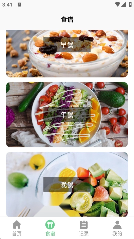 3.在食谱界面能看到早中晚三餐的推荐,大家可以挑选自己喜欢的。