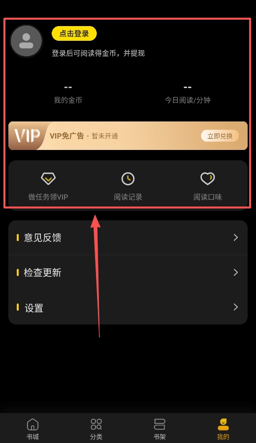 若想解锁完整功能体验,首先需点击底部的“我的”标签页完成登录操作。登录成功后,你可以在该页面进行多项操作:管理VIP会员状态、查看个人阅读数据,以及进行个性化设置调整。
