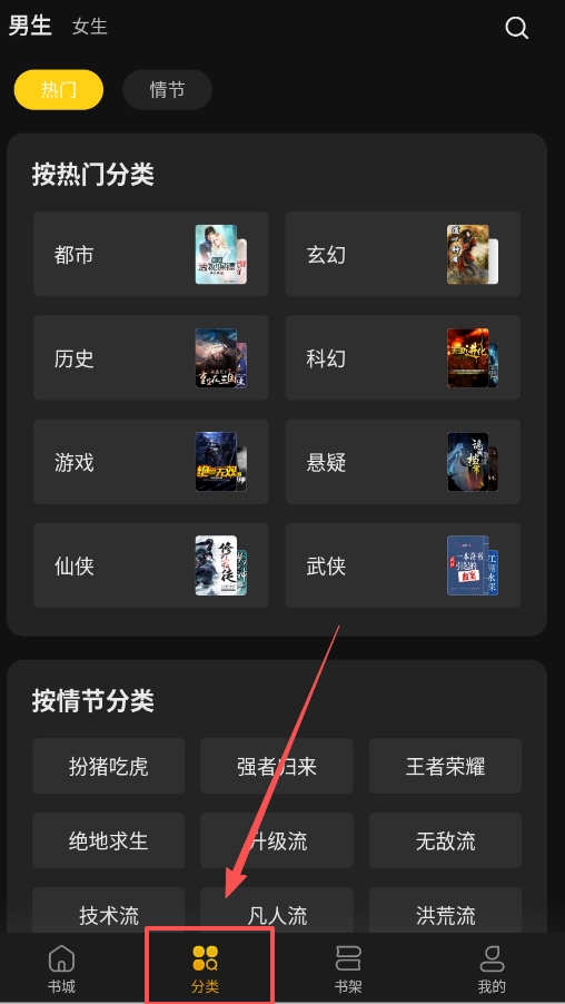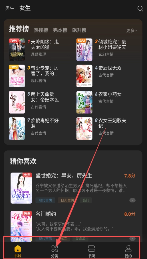 2、软件配备了两条高效的找书途径:其一,借助“分类”页面,查看“书城”页的各类榜单(像热搜榜、完本榜等),从而迅速了解流行走向。