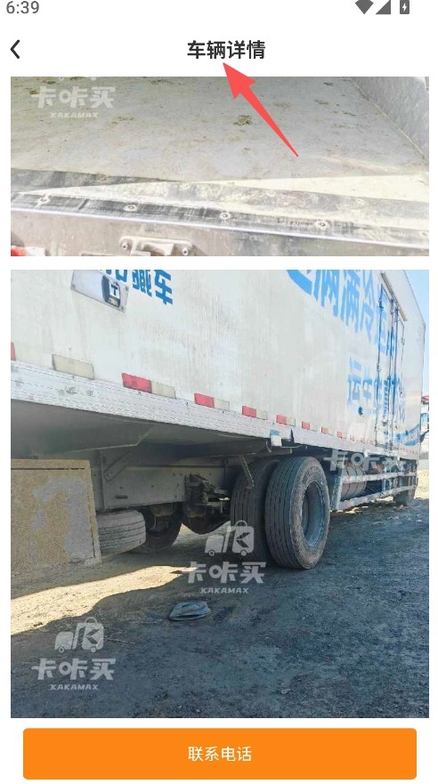 3、点击目标车辆进入详情页面,查看实拍图片并获取联系电话。