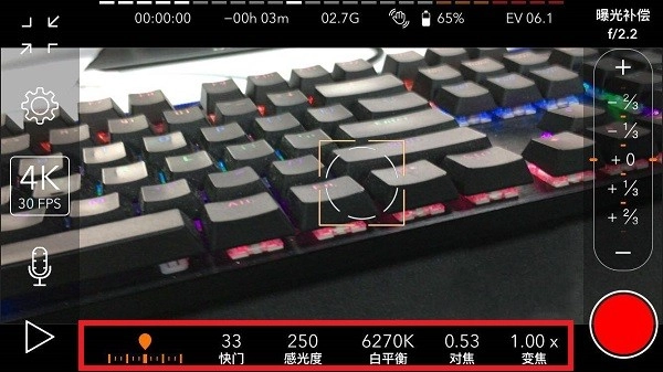 进入软件后,界面上会显示一系列专业的摄像参数,大家可依据下方的说明进行调节。