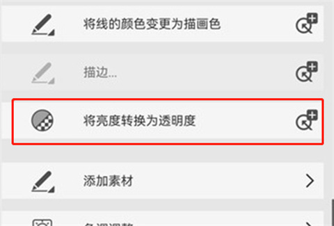 1、点击菜单图标后选择“编辑”选项,接着点击“将亮度转换为透明度”这一功能。