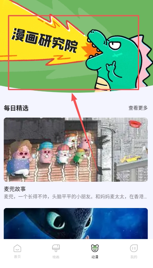 3、“动漫”页面是提升技能的重要环节。一方面可以借助“漫画研究院”深入学习理论知识,另一方面也能浏览“每日精选”中的优质漫画案例,实现理论学习与实践参考的有机结合。