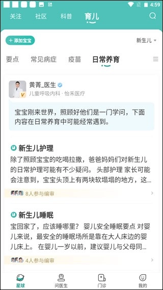 2、进入主页面后,这里展示的是新生儿专区,专区内包含医生给出的相关建议。