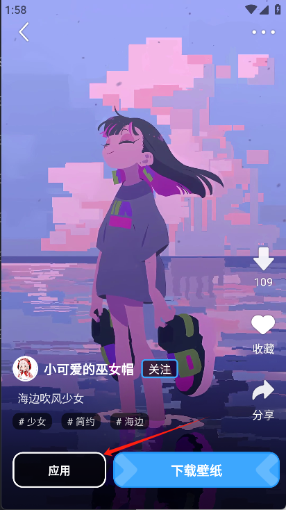 7、先点击已上传的动态壁纸,接着找到左下角的【应用】按钮并点击,即可将该动态壁纸设置为手机壁纸。