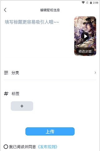 5、给我们的动态壁纸填写标签、名称等相关信息,接着点击【发布】按钮。