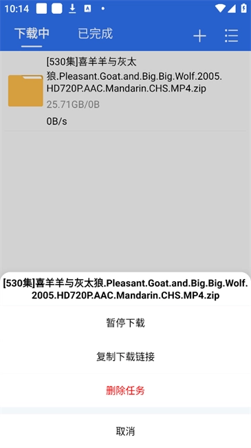 5. 点击磁力链接后,可根据实际需求选择暂停任务、复制链接或是删除任务。