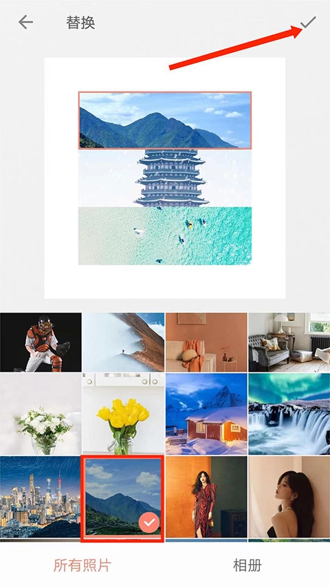 4、在替换界面里,勾选需要替换的图片后,点击右上角的“打钩”图标,就能完成图片删除操作。