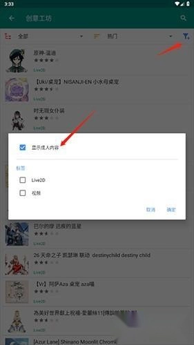 3、打开创意工坊,找到并点击“筛选”按钮,接着勾选“显示成人”选项就可以了。