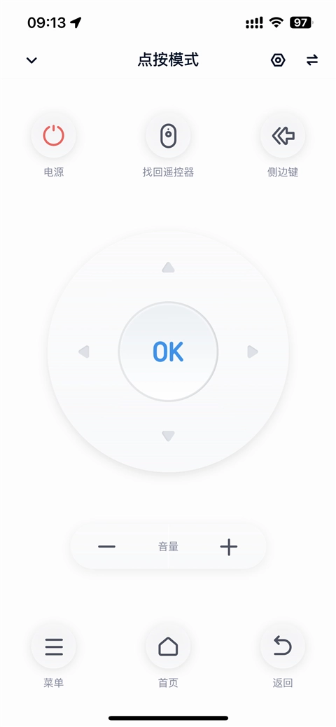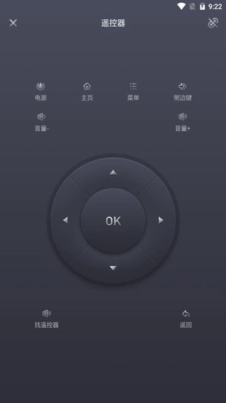 3、遥控器页面提供菜单、返回、电源、语音等功能。