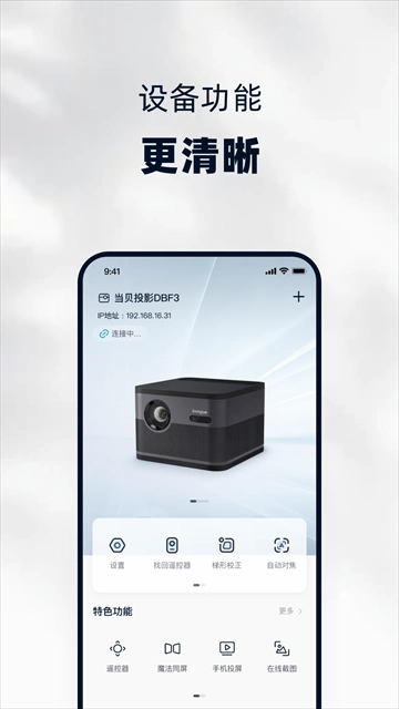 当贝遥控手机客户端其实就是当贝家,由于它可以连接智能设备进行远程操控,因此也被称作当贝遥控。这款客户端支持音量调节、快进、返回、切换下一集等常规遥控操作,除此之外,还具备自动对焦、梯形校正、一键清理以及儿童模式等实用功能,有需求的用户可以来使用。