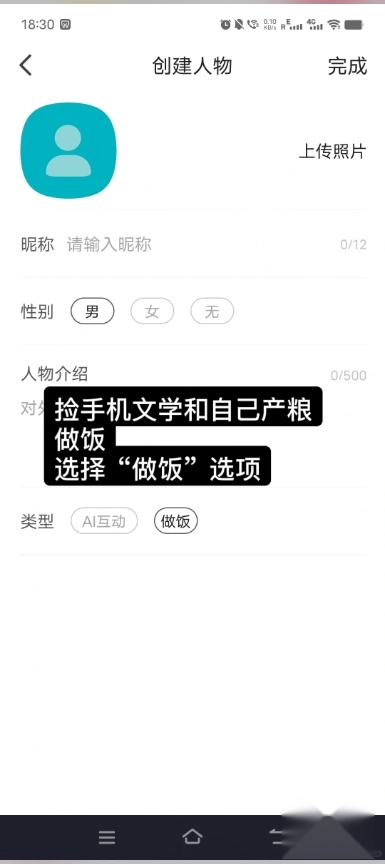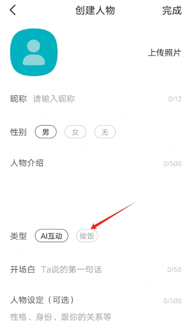 Talkmaker开启做饭模式的操作很简单,只需在创建人物聊天时,于类型选项中选择“做饭”就行。要是类型选成了ai互动,就无法进入做饭模式了。不少网友不清楚Talkmaker的做饭功能在哪里,其实这个功能就藏在创建人物界面的类型选择那里。