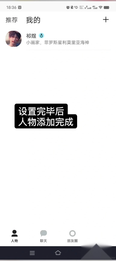 3. 接下来,你可以对新创建的人物头像和昵称进行修改,也能补充个性化的介绍内容。记得体验我们刚上线的AI互动功能,它会让你的聊天过程变得更有趣味。