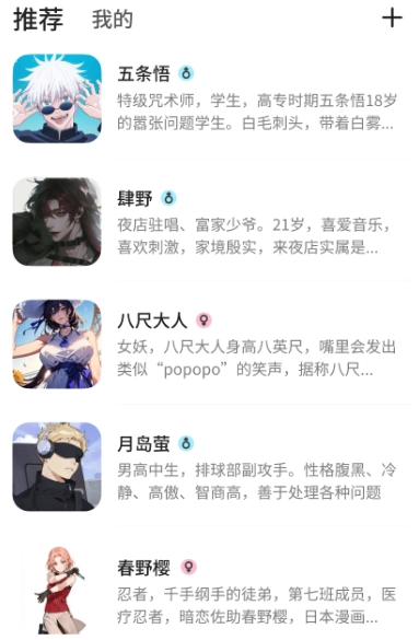 2. 在“我的”页面里,点击“+”号按钮,即可启动人物聊天室的创建流程。