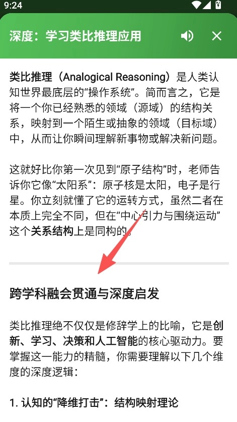 3、点击列表里的具体内容,比如“学习类比推理应用”,就能进入详情页进行阅读学习。