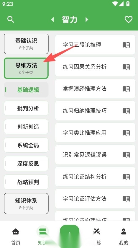 2、挑选思维方法这类目标分类,浏览该分类下的学习内容清单。