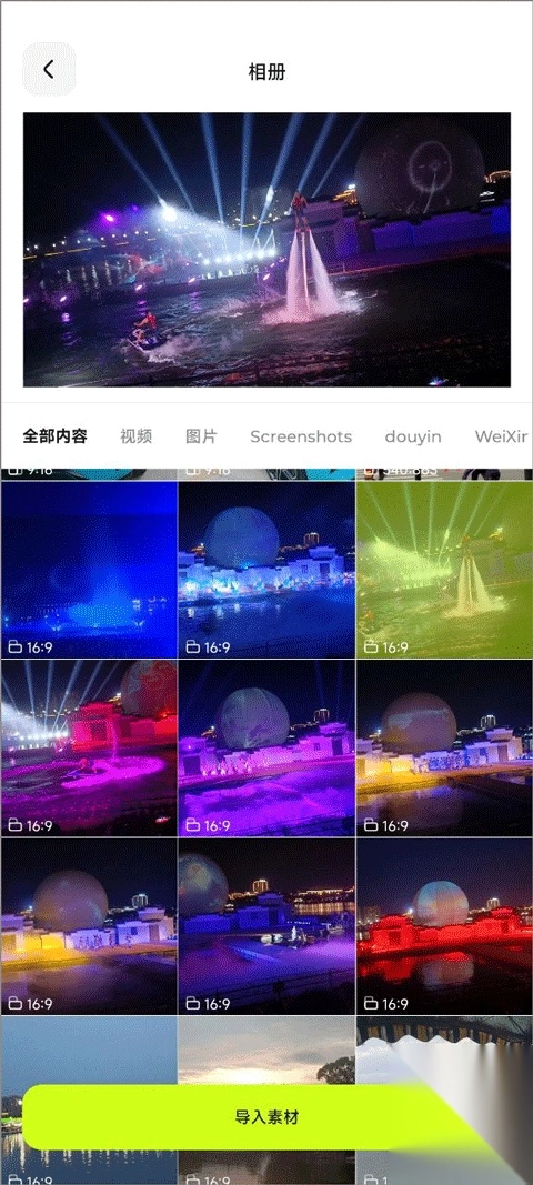3、添加图片或者视频,并导入素材;