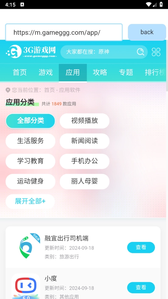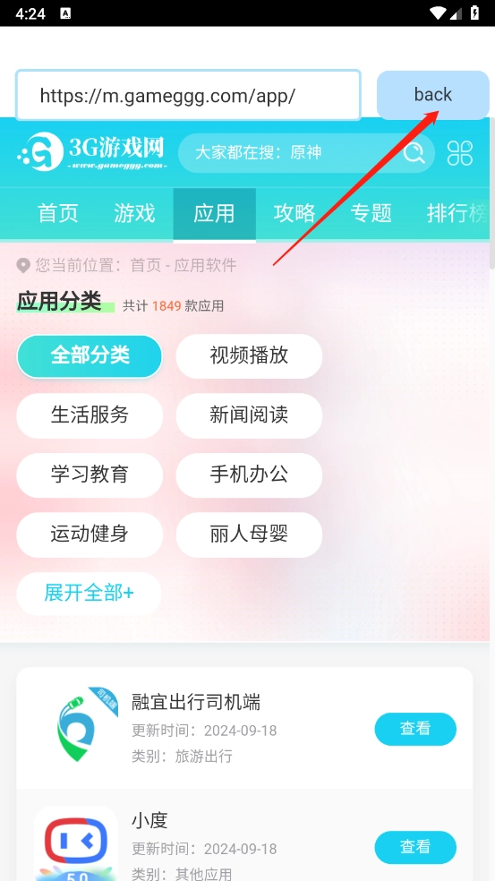 4、点击右上角的“back”返回到首页。