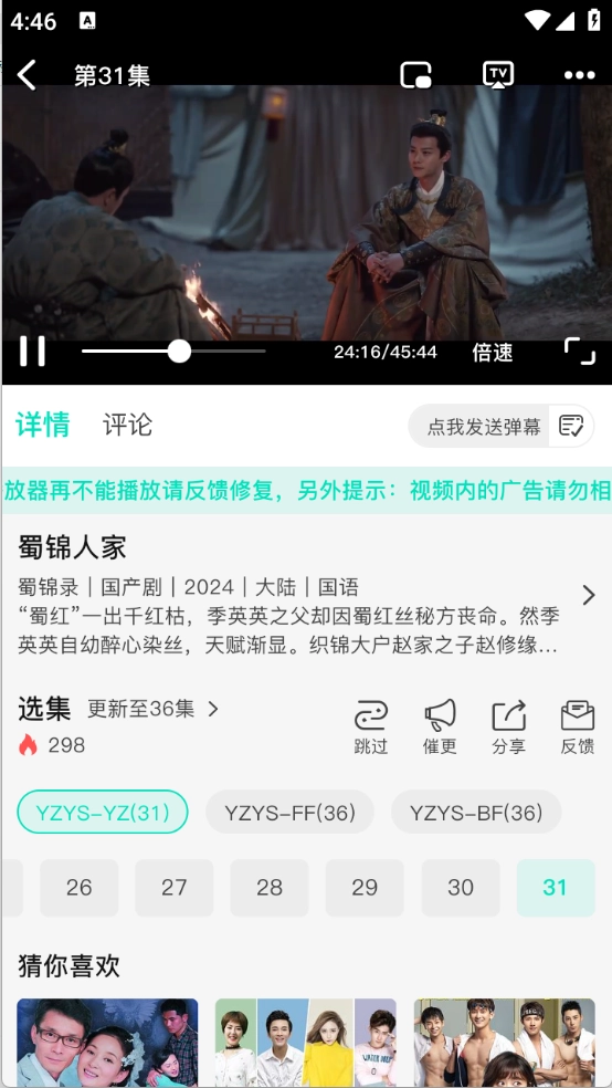5、用户找到想要观看的影视内容后,能够选择对应的集数以及播放源等选项。