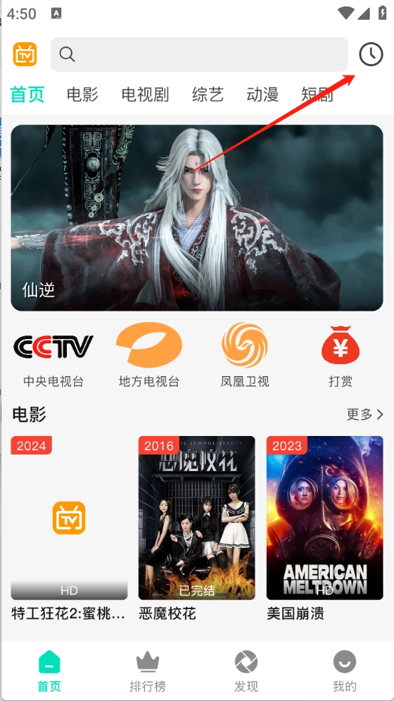 1、进入首页之后点击右上角的观看历史。