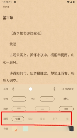5、如图所示,你可以选择你喜欢的翻页方式。