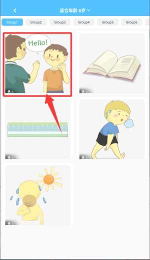 4、在分类列表里给六岁孩子选“Hello”主题卡片,开启趣味单词学习之旅。