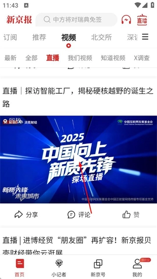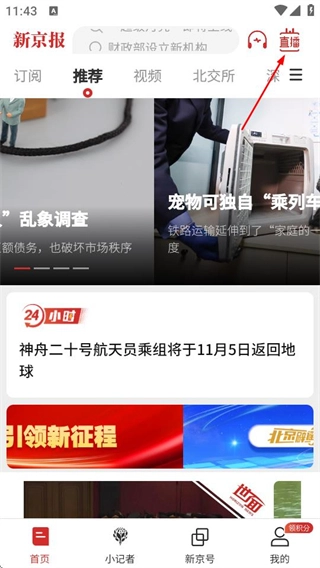 1、打开新京报首页后,点击页面右上角的直播选项,即可进入直播相关页面。