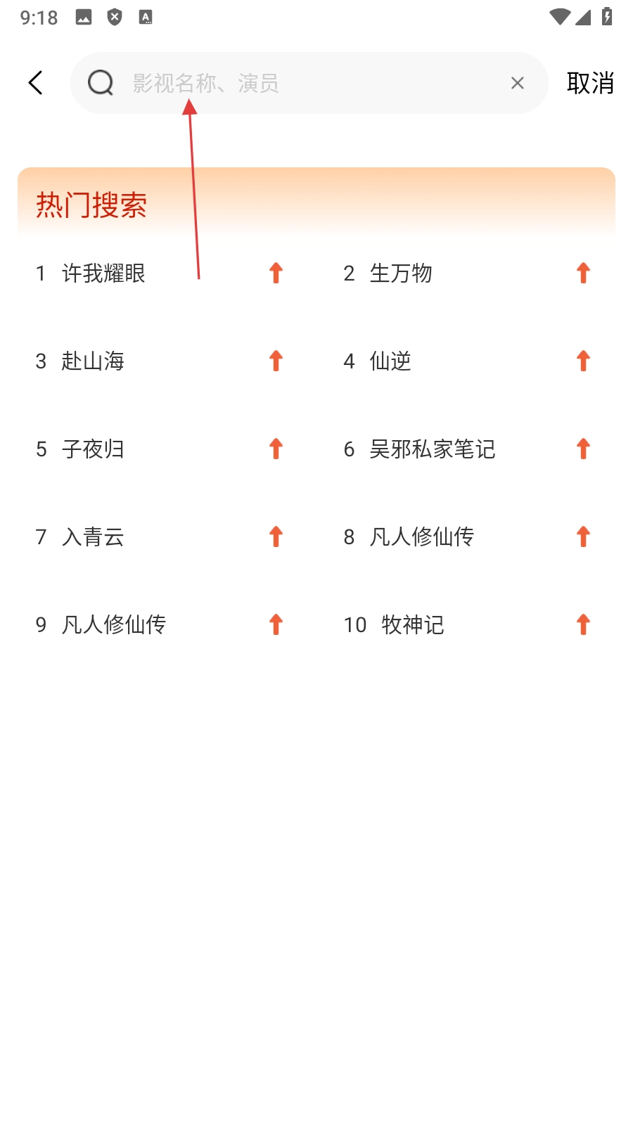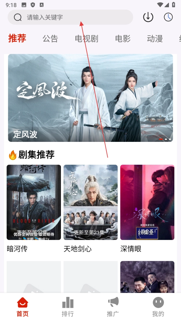 1、点击【顶部搜索框】,进入搜索页面。