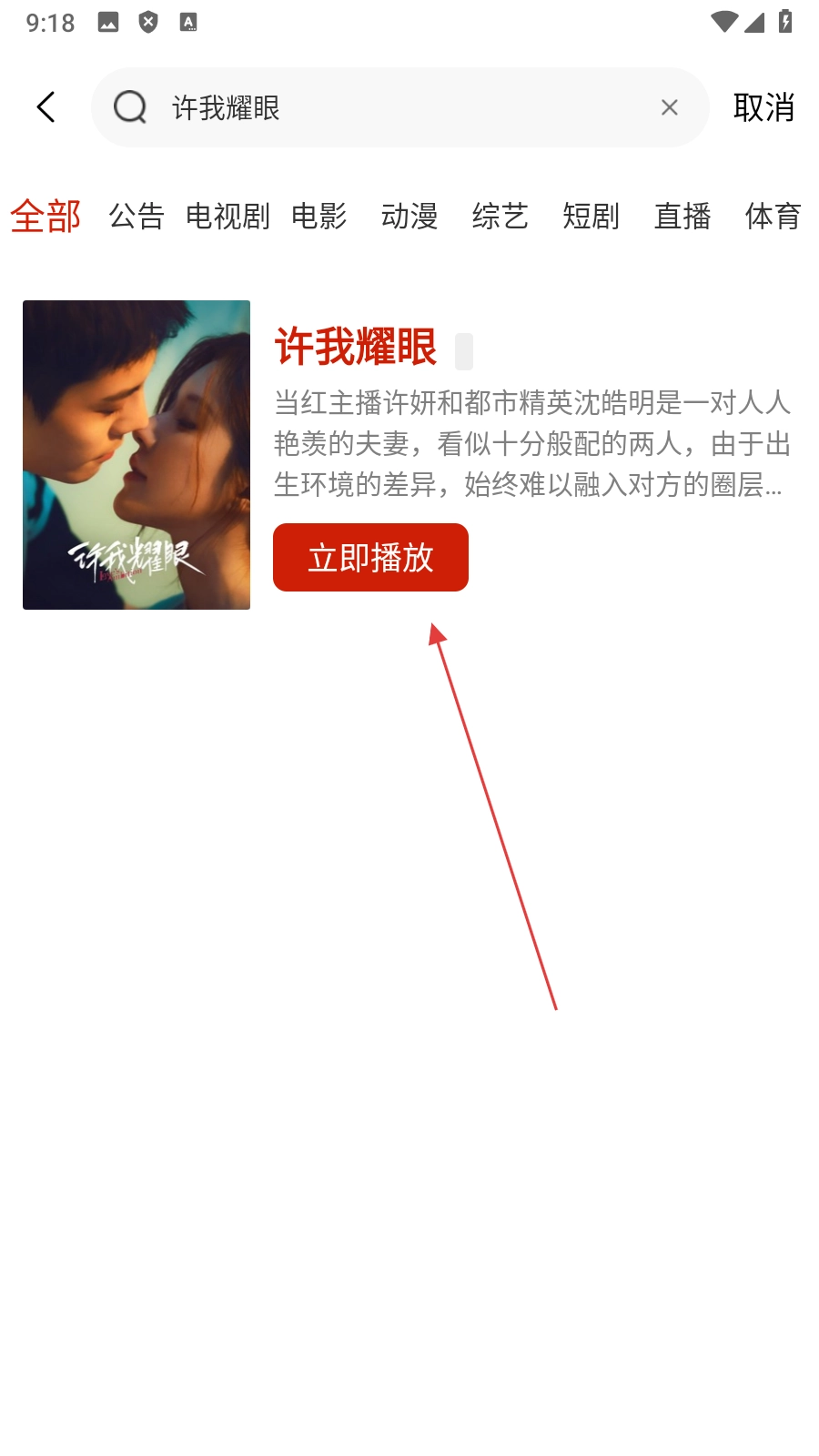 3、在搜索结果页面,点击【立即播放】按钮,即可进入影片的播放页面。