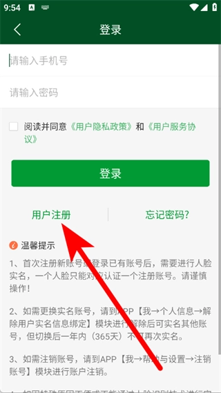 3、在登录页面,点击用户注册,进入用户注册页面。