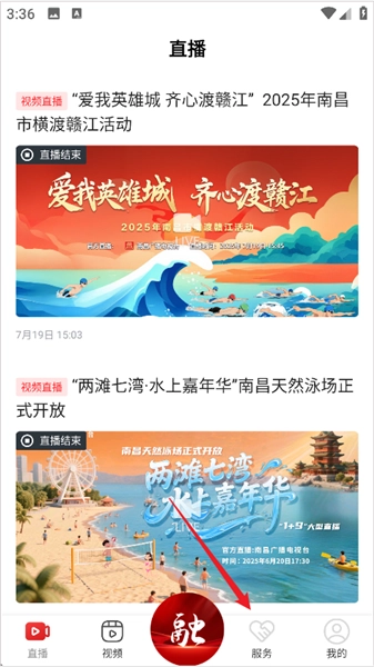 1、打开掌上红谷滩App,点击底部导航栏里的【服务】板块;