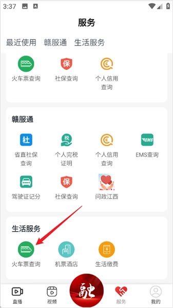 4、在“服务”板块中,同样能够对城市服务、赣服通、旅游出行以及教育考试相关功能进行操作。