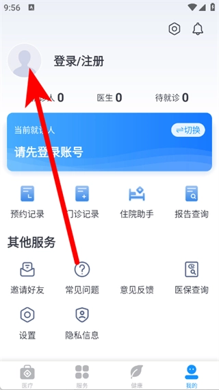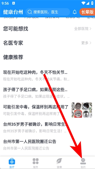 1、打开健康台州,点击底部我的,进入个人页面。