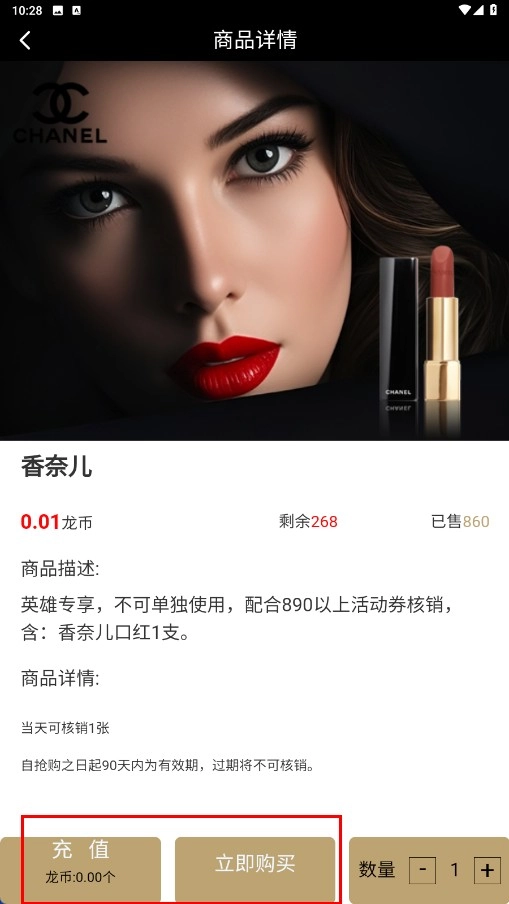 4、进入商品详情页后,能够查看商品的描述与详情内容,同时可以执行充值或者立即购买的操作。