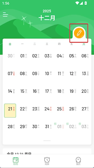 1、在日历界面点击黄色编辑按钮