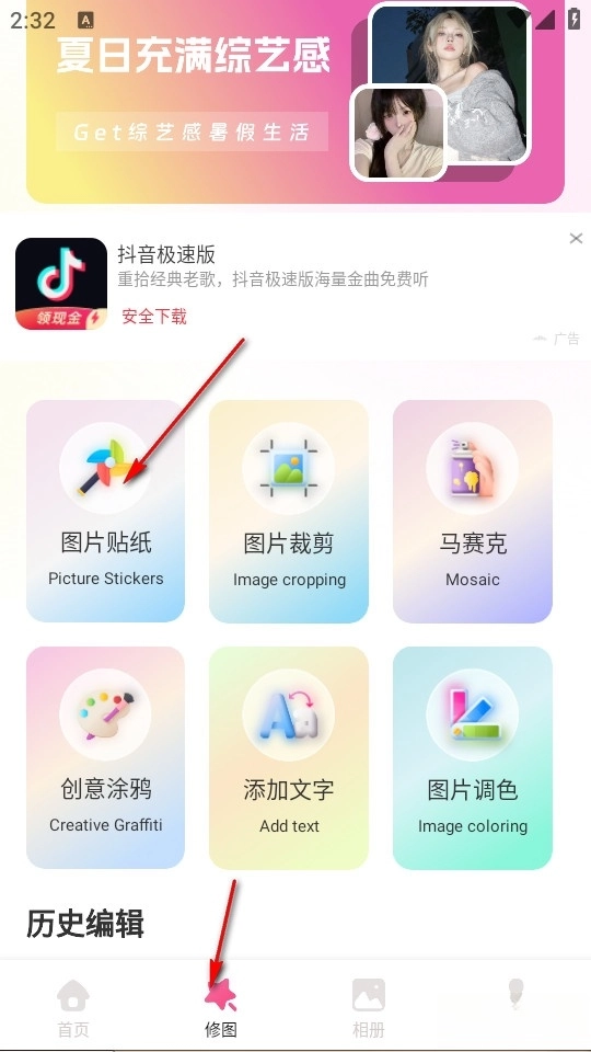2、丰富素材:海量创意资源库,含上千款时尚贴纸与艺术边框,每日更新保持创作新鲜感。