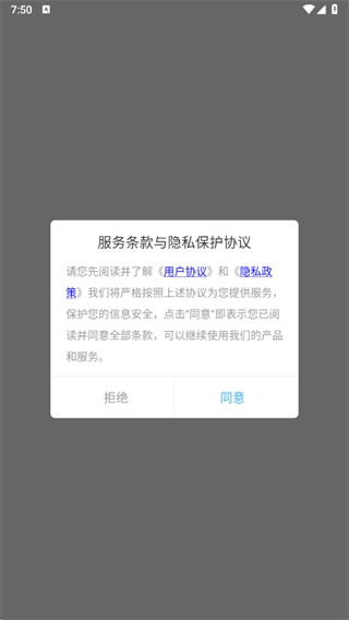 软件安装完成后打开,在首次出现的弹窗里点击同意用户协议。