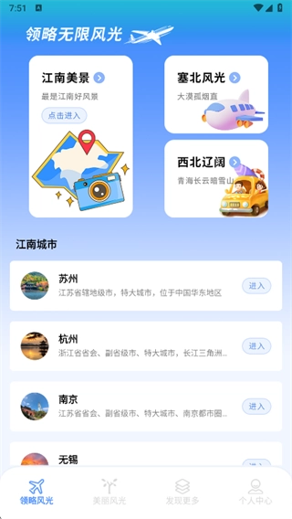 1、软件带领用户超越常规观光,深入体验苏州、杭州、扬州等江南名城的历史底蕴、人文风情与生活美学。